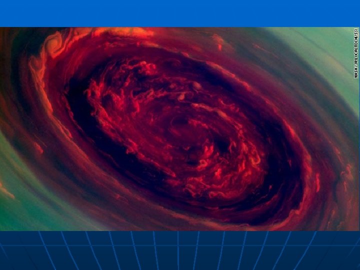 NASA's Cassini spacecraft returned a stunning image of a hurricane on Saturn's northern pole. The shot was taken on November 27 and is one of the first views of Saturn's north pole lit by the sun. The colors in the image are not the real ones. Red is used to represent low clouds, and green indicates high clouds. Scientists don't know how long this storm, which has an eye that measures 1, 250 miles across, with cloud speeds as fast as 330 mph, has been active. The last time the planet's north pole was imaged in 2004, it was in darkness. Studying this storm may lead scientists to new insights about hurricanes on Earth. Cassini is one part of the Cassini-Huygens mission operated by NASA, the European Space Agency and the Italian Space Agency.
