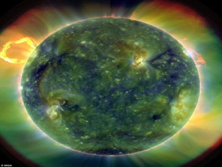 Sauės atmosfera Fotosfera - žemiausias 100400 km storio sluoksnis, akimi matomas kaip spindintis paviršius. Saulės dėmės - laikinos paviršiaus sritys, kur stipresnis magnetinis laukas trikdo konvekciją. Chromosferą sudarončios dujos yra daug retesnės negu fotosferos, bet temperatūra aukštesnė. Vainikas - išorinis labai karštas (1– 2 mln. K) ir retas (~109 da lelių/cm 3) Saulės atmosferos sluoksnis. .