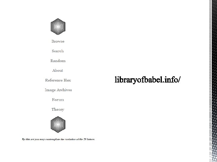 § Bu kütüphanede, doğumunuza ya da ölümünüze dair detaylar eksiksiz biçimde yer almakta. § Söylediğiniz ve söyleyeceğiniz her şey yine bu kütüphanenin sayfaları arasında bulunuyor. § Ancak Heidegger’in de bize düşündürdüğü önemli bir nokta var; bu sözler orada var evet ama pek çoğu henüz söylenmedi bunu da yapacak olan dili kullanan biz insanlarız. § Sayfa 8 Volume 14 on Shelf 1 of Wall 3 of Hexagon: 0 mvuc 75 efusd 94 q 8 krtx 4 s 7 ula 782 hj 9 w 1 g 6 oyk 78 ccetcrxn 0 voyuqscp 6 sodrqes 1 kjpf 6 s 0 mtuw 53 mtpsrs 4 vgbe 70 u 4 jgjmzrdyxh 5 rgbdyytilw 9 jqpi 0 alvwi 5 xdtvaetovhr 7 b 987 lpp 96 v 1 vi 20 iw 1 yhbv 52 lc 99 msv 16 rhv 72 zela 2 wknuxwfbbme 86 tjgudk 7 nip 7063 t 8 nbgy 6 v 0 jtdxwuwiin 12 o 1 cuwpag 45 daom 107 o 1 fy 13 erwhmi 7 b 2 n 2 hft 64 y 8 gazrhnfb 86 z 35 vw 6 i 3 xt 1 uwcypo 27812 a 6 rk 9 te 4 sktr 0 r 8 vx 6 ek 3 bujzex 6 f 3 nba 4 qwkuiojg 1 gcj 9 wdbsmlo 9 rztagf 7 znwv 77 cocbia 53 imzf 3 f 147 fnix 6 shbu 0 pvu 4 ficz 67 yoso 57693 zxnzqgdn 2 z 3 gn 2 yw 4 uz 09 sfg 5 s 65 vs 9 lzoqvaazd 5 wuvzozahzf 7 vc 5 f 31 zo 0 hmzczhfrosly 9 gnimykxg 37 yf 83 o 5 imhddryx 2 gx 3 qyoy 5 ftfzeknrb 6 iyqfzy 88 u 8 kaptamoec 4 ts 3 usy 1 svjrjo 3 ny 480 qkgga 4 sjg 3 nqbnobfgigm 8 rcdyrwr 5 q 58 xgt 7 yljiiqs 5 x 10 b 5 yksj 6 gilbbf 2 zu 6 hs 4 pszv 74 hznnuh 09 v 9 l 68 fp 38 kagwl 386 g 72 ohpoobwalrd 1 aglkkjr 5 il 376 zt 3 xahk 7 q 81923 sbfwyzztbyf 44 ewyvblubdyzfip 4 d 7 p 38 no 9 cx 4 rojfc 6 wgvlw 1 wc 0 pj 6 ehpx 6 iri 4 o 9 uppi 3 cy 79 fvod 84 g 4 d 5191 fiqm 2 tw 2 z 8 khohi 15 ezzppgstl 0 yvc 9 ywm 93 elzo 1 dhkkvn 2 j 48 l 7 f 0 duofvn 87 utni 55 gapmn 8 if 2 l 6 s 27 n 2 vqh 7 v 5 lobgbcrxtc 9 g 05 dpa 4 c 6 ejwa 5 jfjqzjgypqx 99 uvqdnf 1 netnq 1 ervcanmd 6 eo 3 jknsion 7 mog 9 ldfo 0 y 1 vm 7 obdvr 0 esx 8 umx 6 lxiikktk 0 cew 2 gxm 33 k 0 i 5 zh 9 vxiwwb 55 slaxqxqz 34 shx 1 gocx 8202 hsl 9 f 4 m 7 mq 8 gliwr 978 hj 91 j 7 wd 3 tzh 3 xjn 3 gc 0 xzbvnr 535 xhdas 8 eg 9 gyblbjm 0 mtdundxlwa 1247 fzhobnsfa 6 zaevlgz 11 bb 5 fjj 0 srwvyqtplmq 1159 qeonrz 96 w 1 zaa 2 rneyliuowm 7 srpodz 186071 fjkech 4 vt 3 r 3 jnajjjqqnc 1 v 7 m 852 iv 4 lc 4 j 6 tp ek 8 gnnj 82 e 2 naxn 0 h 6 njqq 3 zcfg 4 oleozu 1 fgjrpr 4 fpf 1 k 82 wehbdu 6 l 7418 wgoznpq 0 hmrdvyzujcr 0 i 8 dzavjeni 46 e 8 k 7 uolk 4 xx 0 twjfz 51 to 71 wbnuk 67 jjakauxp 9 jffo 5 b 7 nhb 6069 df 1 wgctkom 5 v 5 cq 9 p 30 lcm 1 e 2 t 75 mctpuofnaa 1 h 1 tdk 7926 vvf 5 frb 3 rc 5 s 5 irhbcc 4 ceskcinw 09 vox 0 ek 6 y 8 yrxf 0 l 6 g 72 v 9 p 32 rln 71 nepbisphlrl 5 jupkz 6 x 57 h 7 p 9 l 9 wrvu 8 fn 4 rsikl 1 uv 3 u 0 vzw 0 o 7 s 5 wefdzpfsxzrsmc 70 bg 1 pk 63 yu 808 l 1 kxjtatsamse 4 uaxi 9 y 7 ky 2 v 4 qa 9 fk 1390 zeetaee 6 b 1 qz 2 ff 6 b 8 wyro 8 qylh 4 lkyzfzq 9 rnpq 99 v 59 zhl 6 yho 6 rq 1 i 43 pxo 4 guzf 70 jkbclbcht 84 m 38 a 92820771 kjwwuzb 62 e 12 q 9 fuscnjtdcp 97 x 8 nw 8 nmv 42 tyusrymhurvt 2 kh 0 xefou 4404 udzguwdqhzhx 0 xoca 44 roeh 8 rvr 3 u 5 qo 7 xwr 6 n 9 j 74 utdooz 8 td 1 bb 2 un 7 cwh 6 g 7 ogyw 8 kc 2 ji 2 p 09 wt 0 g 72 tff 3 yvoj 8 aukb 5 zweqdik 5 atkmfuvfkjf 4 vqni 6 powv 60 af 6 o 7 yf 5 n 7 lp 7 bfm 0 j 7 l 18 pjqnfkywvo 8 ik 6 encxf 36 b 9 mp 700 e 8 ikr 0 q 7 n 89 lc 2 kkdrj 3 w 3 ro 2 tpmr 7 kt 6 to 8 he 9 creyrj 4 zowiyu 6 ata 6 thv 1 vk 98 xec 1 xklvgwmg 49 fgx 70 kf 4 x 75 l 2 uw 14 mxmpyaty 5 umv 89 avqeyothyt 73 p 20 dkxdj 1 nr 5 hx 22 ytacvqhs 5 of 0 zsb 2 j 3 zipnd 3 mvnq 0 hldtwzuvmmvnoi 9 yc 3 w 8 v 9 xknzt 76 ffapxv 15 md 83 k 7 od 6 dw 2 wwkhjqn 3 q 76 mne 97 c 2 fu 8 az 8 vvwld 6 pxt 0 fv 3 cz 292 bysfo 71 d 2 higsg 971 tx 5 id 3014 i 3 h 45 b 6 v 51963 zp 9 gbpuhk 5 qktgibkxmgjgy 9 u 5 wa 5 cysw 9 cv 5 fgnycdn 96 eej 5 plalumfudjkt 6 yq 7 oclp 75 njqhoc 5 l 97 ketk 553 up 3 fdgb 30 t 09 cloiqanpmhpa 28 hxggmo 5 wcxcyfvvi 9 ojiq 5 wtwx 13 sxv 58 g 2 vbdqbkzbb 5 m 5 zbqv 1 l 64 xujf 58 akys 4 r 7 xl 92 ssqezku 7 voxfykbruxd 54 iezglo 0 b 8 gq 094 xte 5 l 9 nocalu opt 0 z 1 apdsstlmw 40 xmdffsldzk 5 vwrdrlb 5 chxzm 2 zy 3 jvte 699 xrv 90 xu 73 wn 97 qdlorbfuncat 8 j 1 ajvz 8 xuiz 59 vbt 89 tb 2 v 3104 nlo 46 vopm 601 sx 0 tejwdockn 6 ypcrsr 546 snlbeskb 6 pdo 7 opry 400 iomjb 3 pj 1 g 60 n 2 ds 6 y 55 as 3 df 8 xuz 78 lwrhmob 9 ekjgtfo 7 f 51 p 183 fh 55 wp 51 a 1 gmpx 35 uzledrte 03 hzxl 3 qc 9 zhcx 9 gh 1 vmpoyndgifye 3 mqanq 1 uqkj 9 omev 8 n 8 sbnsfd 1 s 6 l 9 wx 2 yrdizwmvzgwsps 4 kcxf 8 cpmtnqe 9 od 11 kqv 35 tblgs 0 igwv 6 g 6 yik 8808 vl 4 y 5 in 3 vobqbkuudqlj 529 v 9 xuihh 4 mv 8 ajb 4 kmzepkq 2 op 95 ne 3 z 421 rm 7 bq 2 oyvmcv 18 y 8 fsn 127 pd 3 yomkpe 5 bm 4 vukc 06 rtqcmk 8 bjtpi 92 n 6 k 0 p 3 ipmnui 65 ar 2 hxa 2 oqs 4 g 8 xyfkgxuqe 9 s 0 zr 6 t 72 r 35 co 0 jvqdz 9 bo 0 i 0 ye 3 ef 6951 shh 7 nsuxl 3 xwfbxw 01 omnrbfgpj 2 cr 4 o 7 wgjkzgz 78 e 01 r 7 oqsimj 53 at 6 fdorthurxzxv 0 w 91 1 ddhkqpnupf 3 gt 25 qrf 7 fouqeccue 12 yvkejl 0 ydwsnesmb 2 fsyx 1 flkoodu 2 fw 9 pp 2 xktm 1 d 4 qx 0 xbzgcbw 5 ep 2 h 8 s 9 ktewymotpwsll 1 pppcp 83 eitiref 43 re 0 x 49 blwb 2 q 4 w 59 tadokur 4 t 8 v 1 qtakkrqkk 2 fu