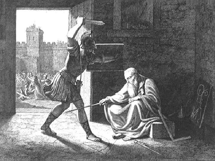 Legendele legate de acest final sunt numeroase. Plutarh relateaza : "In momentul cuceririi Siracuzei, filosoful se gasea singur in locuinta sa, absorbit de cercetarea unei figuri geometrice. Cufundat in gandurile sale, el nu auzea zgomotul si strigatele romanilor care impanzeau intreg orasul si nici nu stia ca cetatea cazuse in mainile lor. Deodata in fata lui se iveste un soldat roman si ii cere sa-l urmeze imediat la Marcellus. Arhimede a refuzat sa plece inainte de a termina demonstratia problemei pe care o studia. Infuriat, romanul a smuls sabia din teaca si l-a ucis. . . " "Nimic nu l-a mahnit mai mult pe Marcellus ca moartea lui Arhimede", spune tot Plutarh, ca un omagiu al sau adus deopotriva genialului siracuzan si illustrului roman.