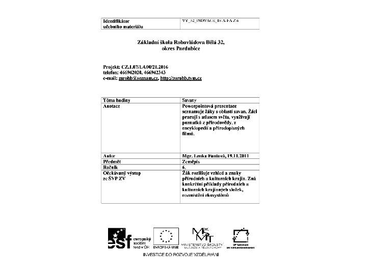• Savany jsou domovem početných stád býložravců, kteří spásají trávu nebo okusují keře. • Býložravci jsou potravou šelem, jako jsou lvi, gepardi nebo hyeny. • Po období dešťů se rychle množí obtížný hmyz, který přenáší nebezpečné nemoci. • Typickou dřevinou afrických savan jsou akácie, v Austrálii převládají blahovičníky. • Na mapě Afriky vyhledej národní parky, které chrání zvířata savan. • Porovnej stepi a savany. V čem jsou odlišné a v čem stejné.