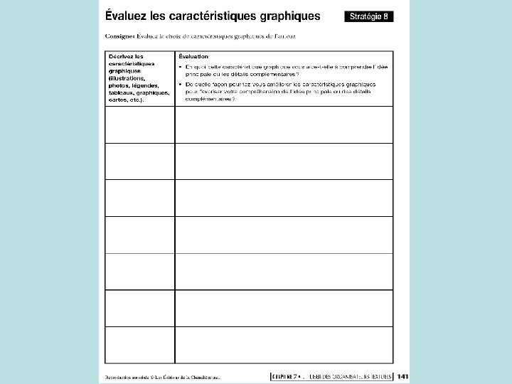 Ressources • http: //www. sasked. gov. sk. ca/docs/francais /fransk/fran/elem/stratl 9. html • Stratégies gagnantes en lecture 12 à 15 ans.