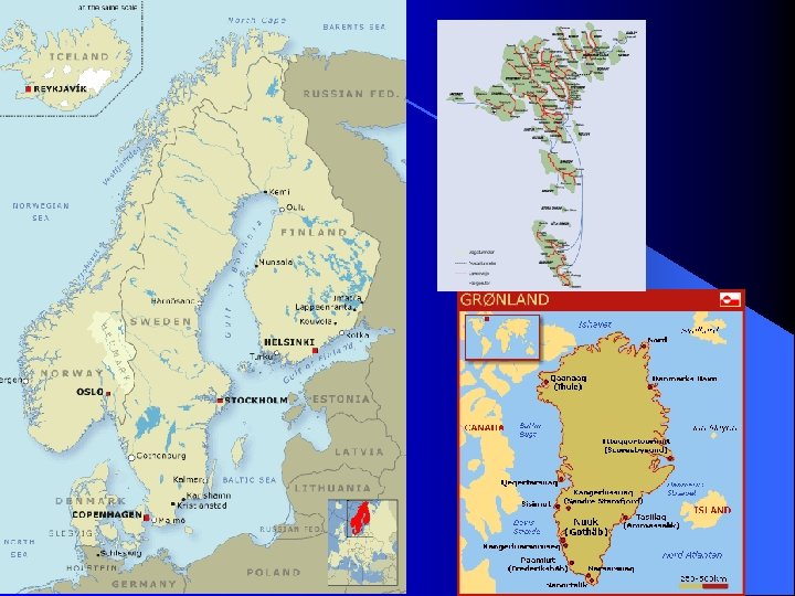 Scandinavian Life and Civilization Introduction l What are the Scandinavian Countries? Denmark, Norway, Sweden l What are the Nordic Countries? Same plus Faroe Islands, Finland, Greenland Iceland
