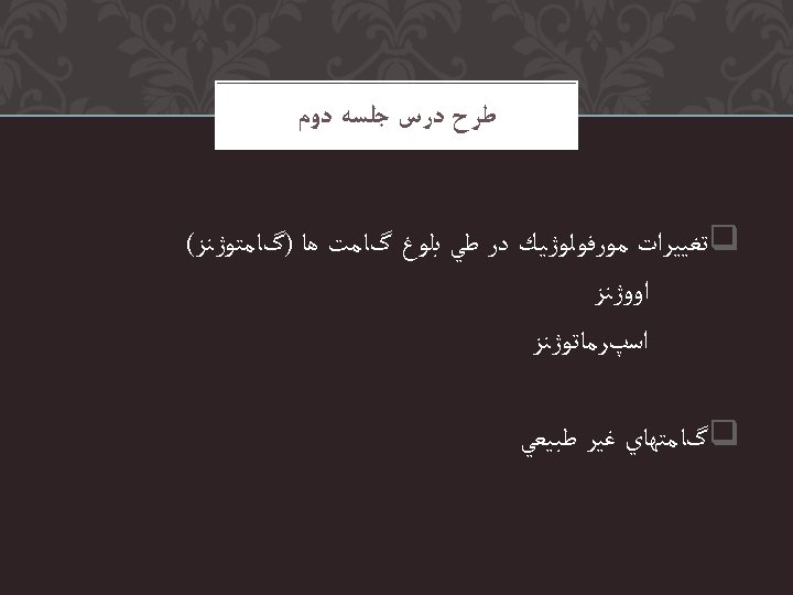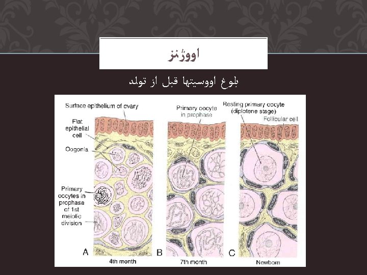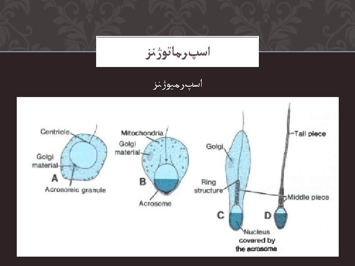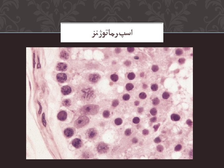 Scanning electron micrograph of a preovulatory follicle Scanning Slides: 24 Download presentation ﺍﻭﻭژﻨﺰ Scanning electron micrograph of a preovulatory follicle ﺍﻭﻭژﻨﺰ Scanning electron micrograph of the zona pellucida after removal of the cumulus cells ﺍﻭﻭژﻨﺰ Scanning electron micrograph of the oocyte surface and cumulus oophorus SEMINIFEROUS TUBULES Contain Germ Cells and Sertoli Cells Primary spermatocytes (46 xsomes) 2 Secondary spermatocyte 4 spermatids 4 Sperm Cells SEMEN ANALYSIS Sperm morphology – morphology types