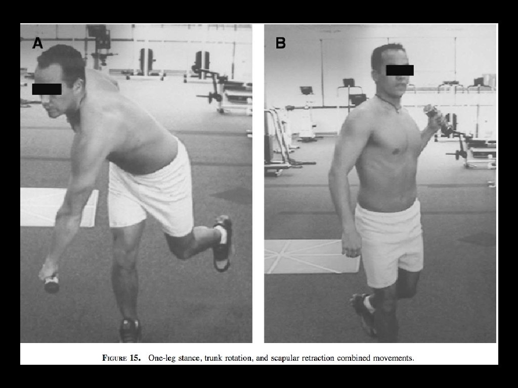 Advanced Sports Movements Last stage of rehab Goal: exercise advanced scapular muscle control and strength Attention to integration of the kinetic chain into the exercise program, plyometric and eccentric exercises Throwers use weight balls and elastic resistance tubing Swimmers should focus on exercises while prone W-V exercise Total Time: 12 weeks to 6 months