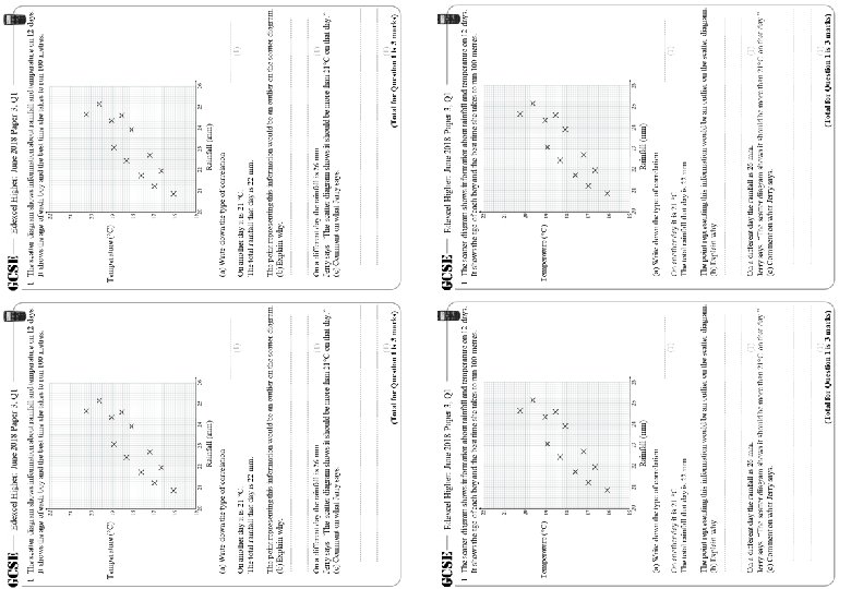 Scatter Graphs – Higher – GCSE Questions These questions are the same format as previous GCSE exams. COPY means they use the exact same numbers as the original GCSE question. Otherwise, they are clone questions using different numbers. The worksheets are provided in a variety of sizes.