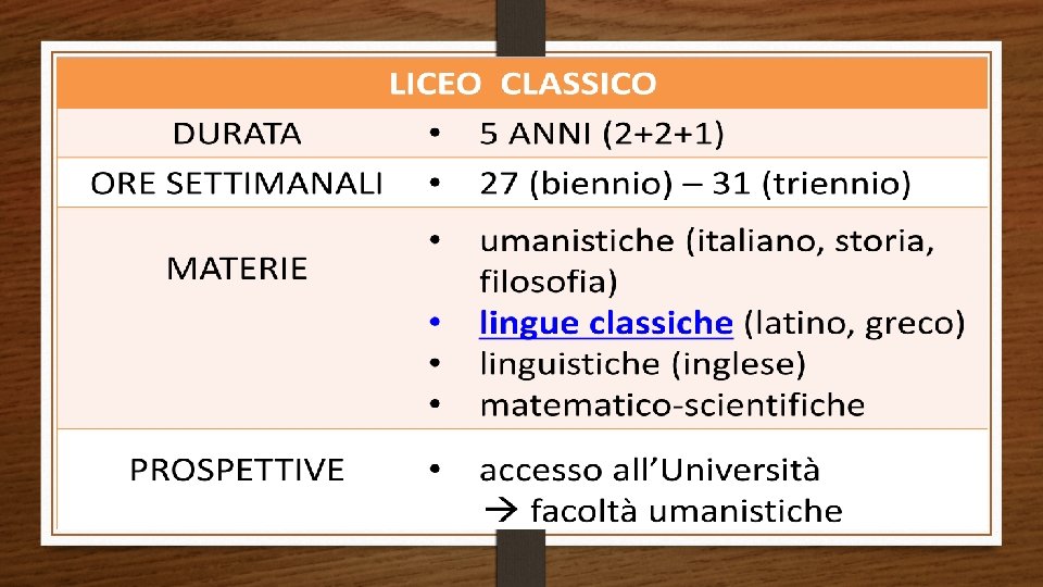 Scegliere il liceo classico per • conoscere lo sviluppo della nostra civiltà nei suoi diversi aspetti (linguistico, letterario, artistico, storico, istituzionale, filosofico, scientifico); • comprendere il valore della tradizione come possibilità di comprensione critica del presente; • apprendere le lingue classiche e comprendere i testi greci e latini per una più piena padronanza della lingua italiana; • maturare la capacità di argomentare, di interpretare testi complessi, di risolvere diverse tipologie di problemi; • saper riflettere criticamente sulle forme del sapere e collocare il pensiero scientifico all’interno di una riflessione umanistica.