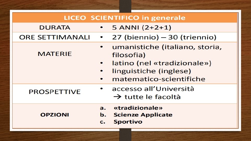 Perché andare al liceo? • Scegliere il liceo dà una preparazione culturale ampia, • Regala la capacità di approfondire, di cogliere il dettaglio, • Favorisce l’elasticità mentale, la versatilità nello studio e il problem solving. • É utile sicuramente per fare l’università, di qualunque indirizzo essa sia, ma serve anche a rendere la mente molto più vivace e flessibile.