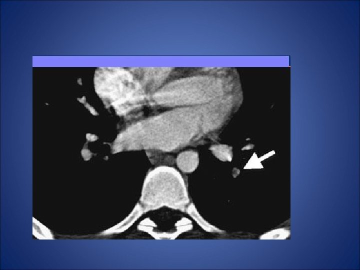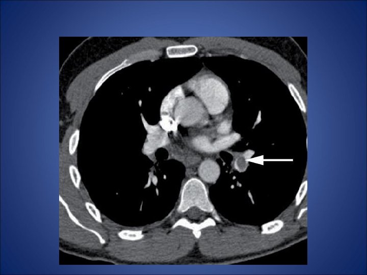 Embolism pulmonar acut • - desi simptomele clinice indica embolismul pulmonar (durere pleuritica, dispnee), pacientul din cazul de fata nu prezinta niciun factor de risc (chiar mai mult ca factori de preventie avem varsta si activitatea fizica) - pentru certitudine s-a folosit investigatia CT care a relevat multipli emboli atat in vascularizatia majora a plamanului stang cat si a celui drept - orice evaluarea ulterioara a pacientului nu a putut elucida cauza embolismului. • Nu exista suficiente referiri la naproxen in cazurile raportate de embolism pulmonar si astfel nu poate fi incriminat pentru producerea acestui fenomen. Mai mult, dupa tratamentul intraspitalicesc pacientul a refuzat tratamentul cu warfarina si la la cateva luni au aparut alte episoade de embolism. Decizia terapeutica finala a fost plasarea unui filtru Greenfield de vena cava inferioara.