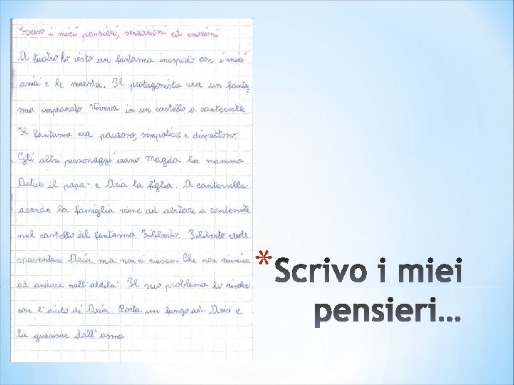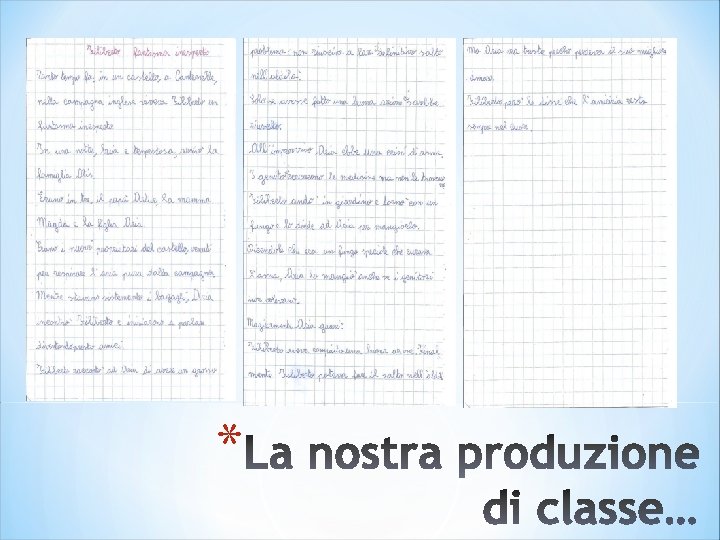Fase 4 *Invito un bambino per gruppo a leggere gli elaborati prodotti. *Raccolti i vari testi si procede alla realizzazione di una produzione di classe che raccolga tutti gli elementi emersi dai diversi elaborati, costruendo in questo modo un testo riassuntivo collettivo della rappresentazione vista. *Si procede alla correzione ortografica e morfosintattica dei testi. *
