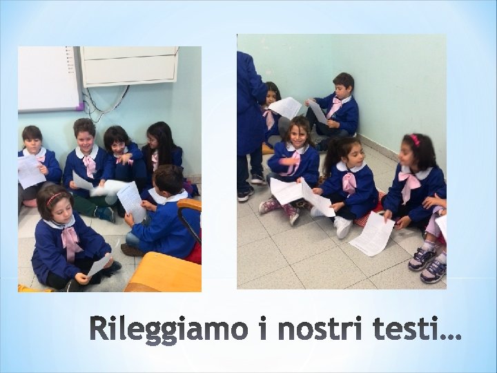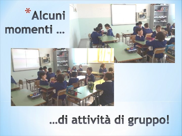 Inclusività L’attività proposta è stata progettata e costruita su una didattica attiva, tale da poter facilitare i percorsi per gli alunni in difficoltà presenti nella nostra classe. Nella fattispecie, la peculiarità dell’argomento e delle singole modalità operative ha consentito la piena fruizione e partecipazione di ogni alunno, secondo le proprie personali potenzialità, e il raggiungimento degli obiettivi prefissati. *