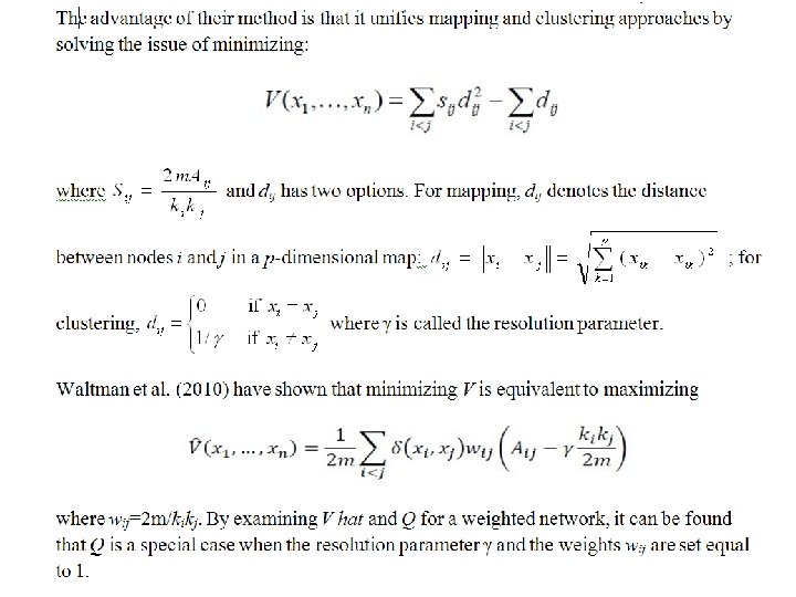 Clustering and mapping methods • VOSviewer clustering and mapping (Waltman, Eck, & Noyons, 2010) technique is selected • It is developed based on Clauset, Newman, and Moore’s (2004) algorithm for weighted networks.