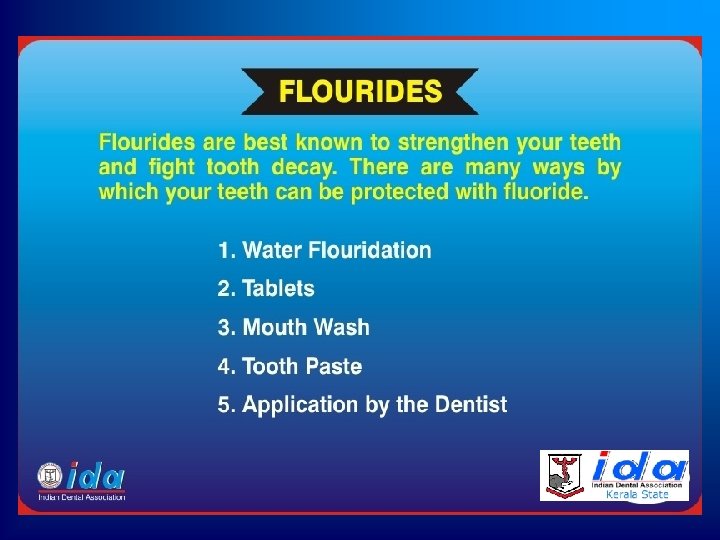 CREDITS CDH wing IDA kerala state 2010 Ø Dr. Samuel K Ninan (President , IDA Kerala state Branch 2010) Ø Dr. Shibu Rajagopal (Secretary , IDA Kerala state Branch 2010) Ø Dr. Joseph C C (Chairman CDH Kerala Branch 2010) Ø Dr. Mehul R Mahesh & Dr. Akhil