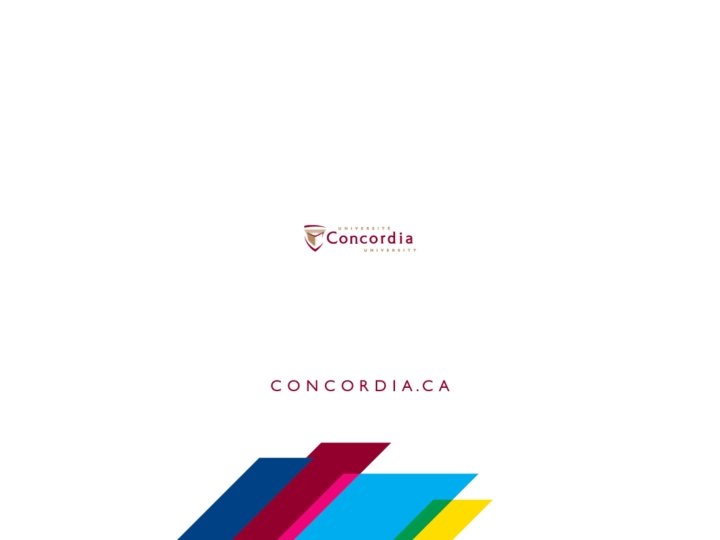 Resources o Supervision Guidelines o Master’s Guidelines o https: //www. concordia. ca/sgs/resources/handbooks/masterssupervision-guidelines. html o Ph. D Guidelines o https: //www. concordia. ca/sgs/resources/handbooks/phdsupervision-guidelines. html o Graduate Calendar o http: //www. concordia. ca/academics/graduate/calendar. html o Grad. Pro. Skills – offers numerous resources for students (workshops on thesis writing, time management, wellness, etc. ) – more on this later