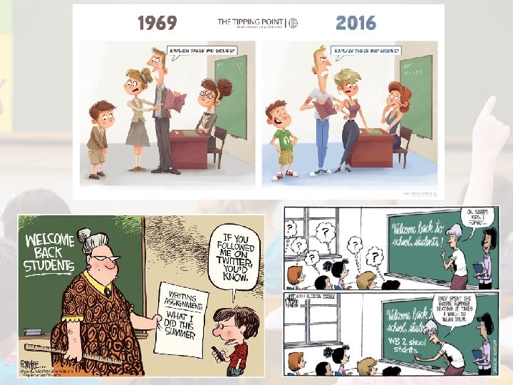 THE METHODS OF STUDYING X DIRECT INSTRUCTION IS NO LONGER THE MAIN TEACHING METHOD Direct instruction used to be such a crucial part of everyday lectures, and while it is definitely still important, other methods have slowly started being just as important. As technology got more and more important it also became a major part of the way teachers teach kids, as it provided them with a multitude of different tools they can use instead of just direct instruction. Besides technology, a major tool for learning that many teachers use more commonly now is class discussion, because it tends to be less formal and more engaging, and it generally feels more natural to discuss topics in a group rather than just one person lecturing. THEN NOW