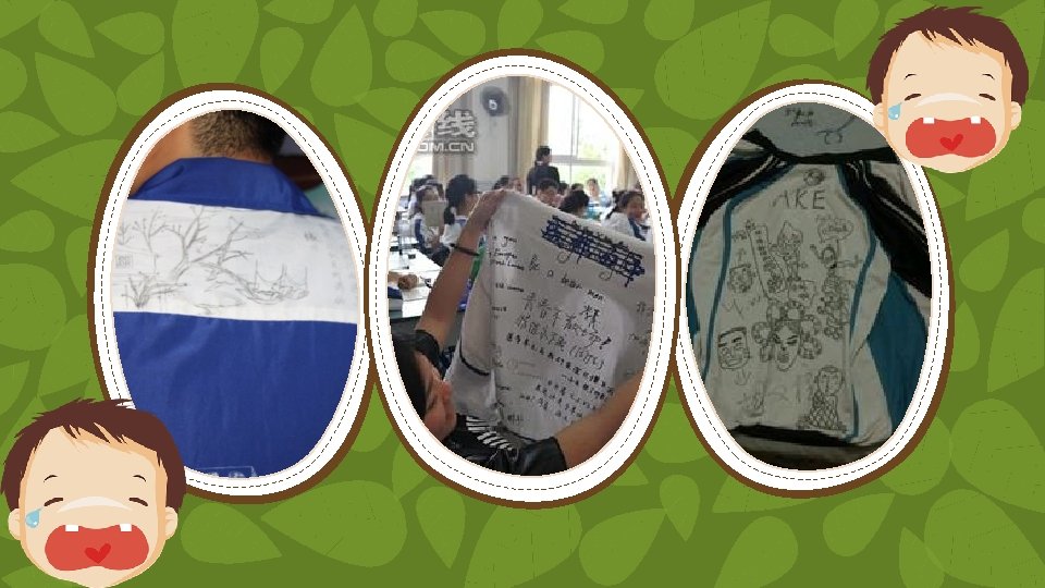 Maybe all of us we had written graffiti on our uniforms like this, just for fun or to show our individual character from the thousands of students whom wear the same closes.