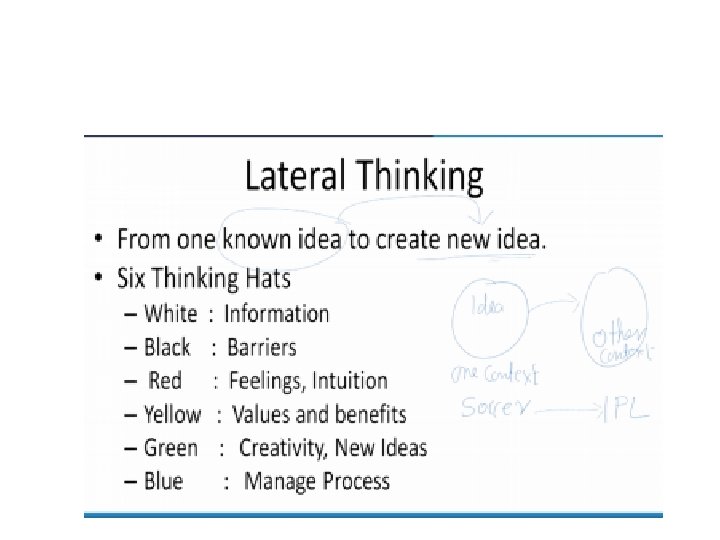 • Asking “What if? ” is an excellent technique that can help you to stretch your lateral thinking muscles, because it forces you to explore possibilities and challenge assumptions – both at the same time. • Come up with questions that are extreme to the point of being ridiculous, because they help to whack us out of our well-rutted paths of thinking.