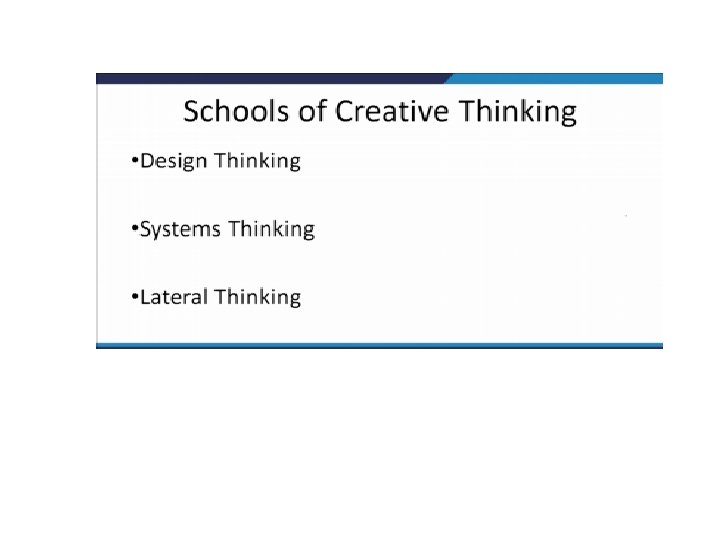 Lateral thinking • “Lateral thinking is a phrase coined by Dr. Edward de Bono as a counterpoint to conventional or vertical thinking. In contentional thinking, we go forward in a predictable, direct fashion. Lateral thinking involves coming at the problem from new directions – literally, from the side. ” • life has its dogmas – the dominant ideas that everyone simply accepts without questionining them. They are assumptions, rules and conventions that influence people’s thinking and attitudes. Once they’re in place, people naturally support them, because they seem to make sense, and they tend to vociferously defend those beliefs, no matter what. • Lateral thinking, is an excellent tool for viewing those dominant ideas in a fresh light. The strategy is to write them down, and then deliberately challenge them. Turn every dominant idea and association on its head, and simply see where it leads.