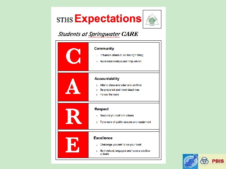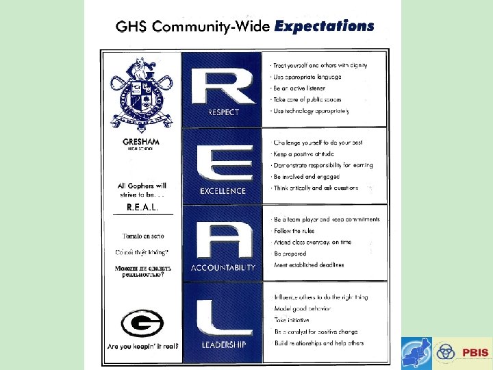 School Wide Expectations Everywhere! • • • School website Building entrances Computer wallpaper TV screens School newspaper Hallways Classrooms Sporting Events Dances