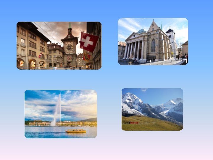 Interessante Fakten • In der Schweiz reisen Politiker im Stadtverkehr • In der Hauptstadt Bern werden Swarovski. Steine für Fußgängerwege verwendet • Die Schweiz hat genug Bunker für die gesamte Bevölkerung • Die Schweiz gehört zu den Ländern mit dem höchsten Cannabiskonsum