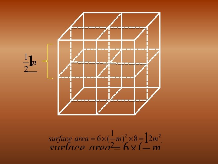 Let us consider one Cubic Volume shown in figure its the Surface Area is 6 m 2. Ø When it is divided into eight pieces its Surface Area becomes 12 m 2, similarly When the same volume is divided into 27 pieces its Surface Area becomes 18 m 2. Ø Thus we find that when the given volume is divided into smaller pieces the Surface Area increases. Ø Hence as particle size decreases a greater proportion of atoms are found at the surface compared to those inside. Ø Nano particles have a much greater surface area per given volume compared with larger particles. It makes materials more Chemically reactive. Ø