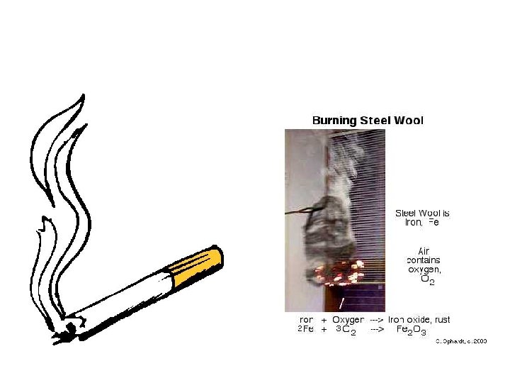Chemical Changes • Chemical changes alter the composition; i. e. , burning wood gives off water and carbon dioxide, which is not the same as the cellulose and oxygen that was there before. (chemical formula)