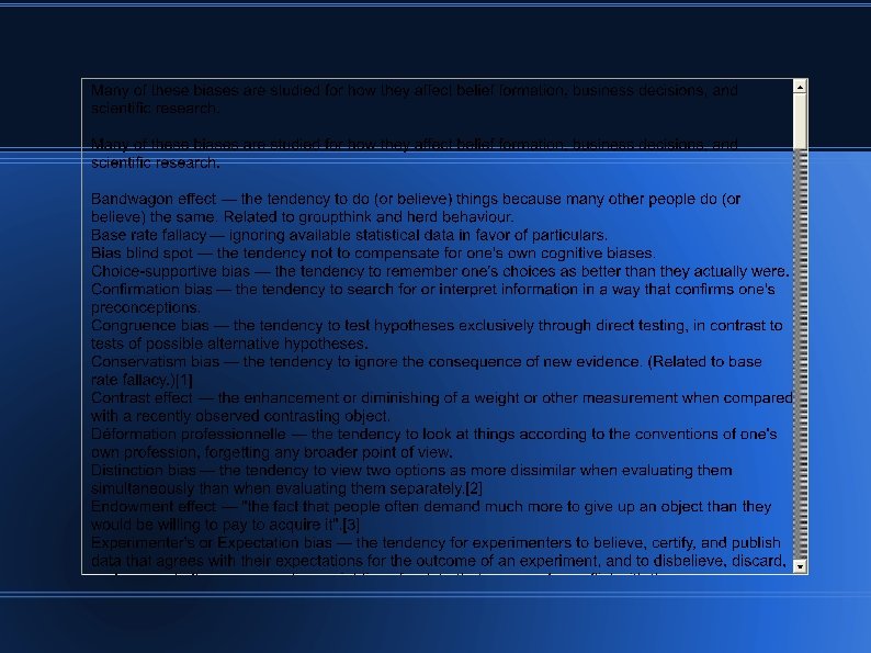 Pseudoscience - 10 Things to look for 1) Language Does the claim confuse terminology, use vague definitions or misleading jargon? e. g. Energy in physics, chemistry, biology = work done by a system. Energy in reiki = ? 2) Anecdotal support Is the claim supported with reference to unsubstantiated anecdotes? e. g. I’ve heard lots of people say they benefited from taking St. John’s Wort for chronic depression. 3) Vague references Does the claim allude to ‘many studies’ non-specifically? e. g. Of course magnets cure arthritis – it’s proven by a heap of studies.