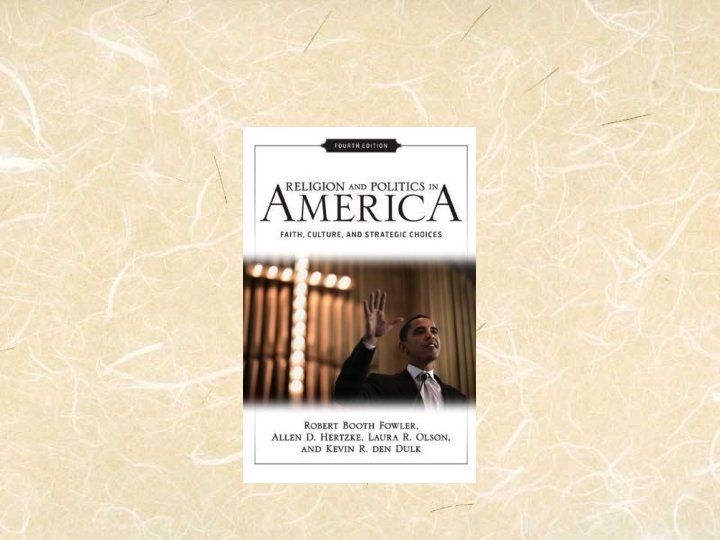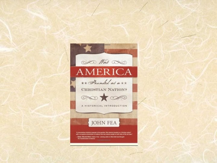 Key Scholars • • Thomas Kidd Fred Beuttler Mark Noll Daniel Dreisbach Mark David Hall James Hutson John Fea Donald Lutz