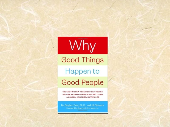 Key Scholars • • • Stephen G. Post Kenneth Pargament Byron Johnson Robert Emmons Rodney Stark Robert Woodberry