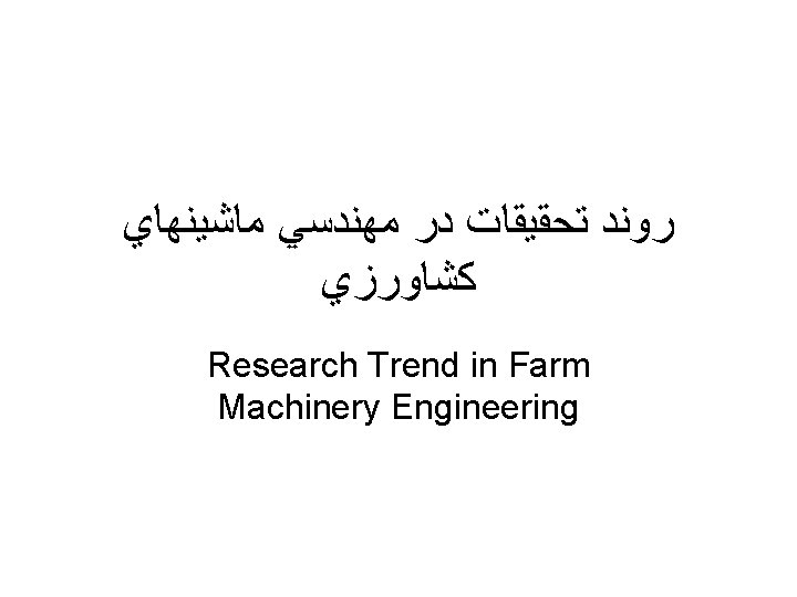 Outlook for agricultural engineering in Developing countries • shift the historical emphasis from 'on-farm mechanization' to the development and application of new innovations using onfarm agricultural automation AND off-farm industries
