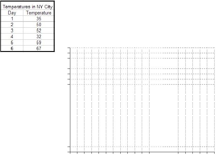 Steps to Find Scale 1. 2. 3. 4. 5. 6. 7. Find the range of the data for the Y Axis (67 -32= 35) Count number of lines/boxes on axes (20) Divide the range number by the number of boxes (35÷ 20=1. 75) round to 2 to make easier Each box will be worth 2 degrees days Repeat for the X Axis (6/20=0. 33) Each box is worth less than a days , 3 box =1 days Each third line should be labeled with 1 day
