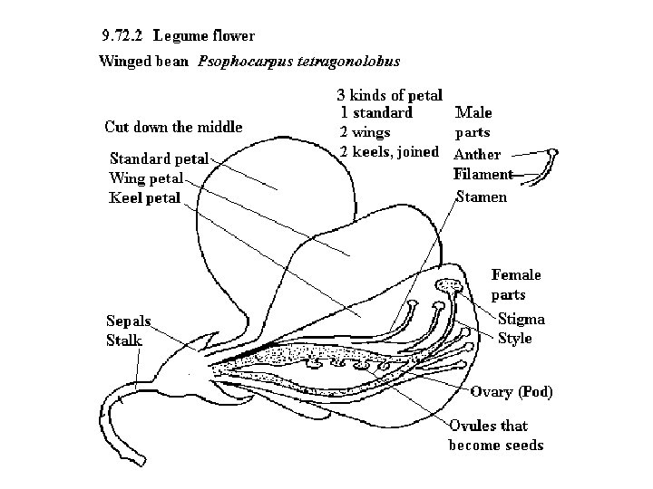 Plant Dissection Many kinds of flowering plants are commonly subjects for dissection in biology. The flower is the plant structure specialized for reproduction in advanced plants. The processes of meiosis and fertilization occur in the flower. It is a complex structure made from modified stems and leaves, producing pollen in the males, and eggs in the females. Seed: Specialized structure (mature ovule) in gymnosperms and angiosperms that contains the embryo (embryonic sporophyte). Ovule: In seed plants the structure contained in the ovary and develops into the seed.