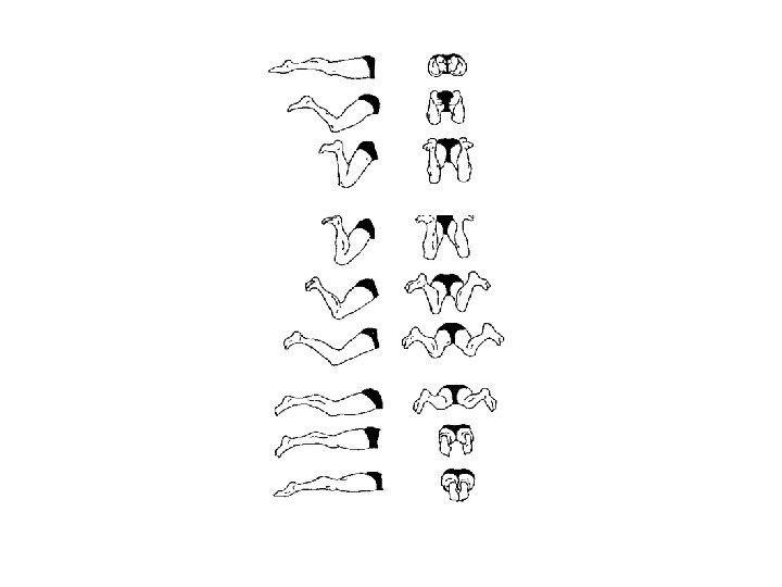 Una difficoltà abbastanza frequente incontrata nel recupero delle gambe e più precisamente nella fase di "posizionamento" dei piedi, riguarda l'assunzione dell'atteggiamento intraruotato delle cosce e la posizione abbastanza "stretta" delle ginocchia : l'allievo tende a tenerle naturalmente extraruotate con le ginocchia abbastanza larghe. Per correggere questo atteggiamento errato (extrarotazione delle cosce) si rivelano utili sia il galleggiamento verticale che il nuoto sul dorso con gambe rana, facendo attenzione, in questo esercizio, che le ginocchia siano completamente immerse.