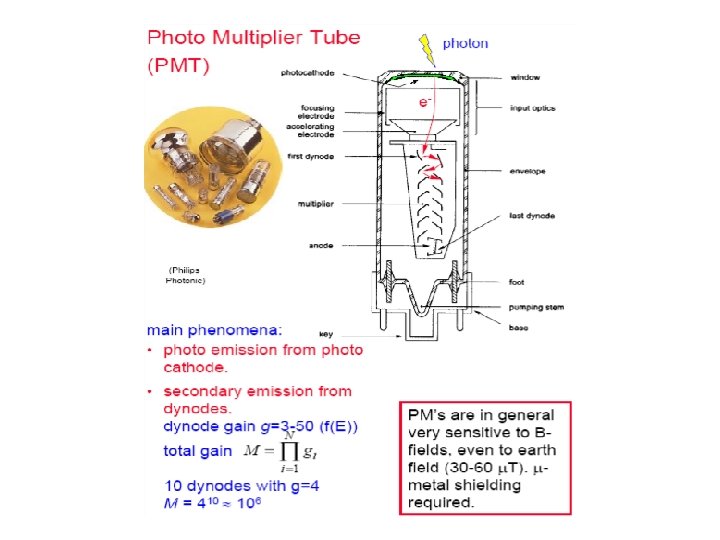 Detection of scintillation photon (photo detector) n tio la til in Sc n to o ph on P t ho oe tr lec Photo sensitive material (photocathod) Epe = Eγ - W