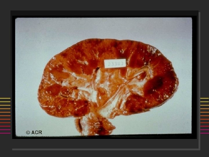 RHABDOMYOLYSIS n n n Injury to the sarcolemma of skeletal muscle with systemic release of muscle macromolecules such as CPK, aldolase, actin, myoglobin, etc Maybe LIFE-THREATENING: from hyperkalemia, met. acidosis, ATN from myoglobinuria Common causes: Et. OH, Cocaine, K+ deficiency, infection, PM/DM, infection (clostridial, staph, strept), exertion/exercise, cytokines