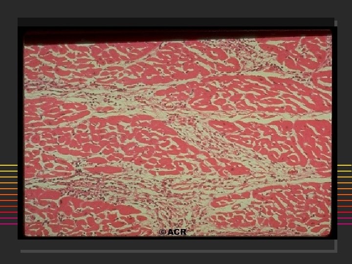 PM/DM Complications n n n PULMONARY Aspiration pneumonitis Infectious pneumonitis Drug induced pneumonitis Intercostal, diagphragm involvement Fibrosing alveolitis RARE: ] ] Pulmonary vasculitis Pulmonary neoplasia n n n CARDIAC Elev. CPK-MB Mitral Valve prolapse AV conduction disturbances Cardiomyopathy Myocarditis