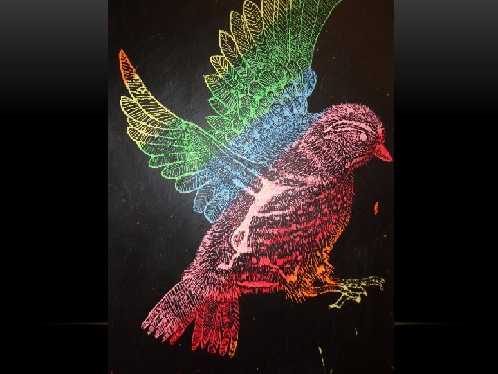 OBJECTIVE • What are we creating? • We are creating a scratchboard artwork • What do we do to reveal a colorful design? • We scrape away black paint to reveal a colorful design.