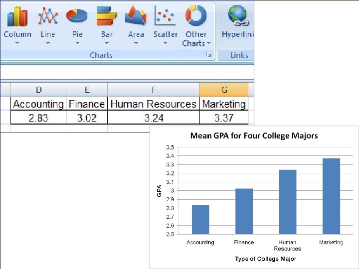 Yes Homework F (3, 24)= 3. 517; p < 0. 05 The GPA for four majors was compared. The average GPA was 2. 83 for accounting, 3. 02 for finance, 3. 24 for HR, and 3. 37 for marketing. An ANOVA was conducted and there is a significant difference in GPA for these four groups (F (3, 24) = 3. 52; p < 0. 05).