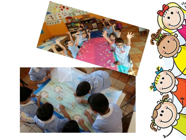 Si comincia da qui. . . • Nella nostra scuola, i primi due mesi sono stati dedicati principalmente all'accoglienza, per facilitare il passaggio dall'ambiente familiare al gruppo scuola. • A tale proposito ci siamo attivate per creare un ambiente scolastico gioioso, sereno ed accogliente, dove ogni bambino si è sentito libero di agire e scoprire nuovi saperi, sperimentando esperienze comunicative e didattiche