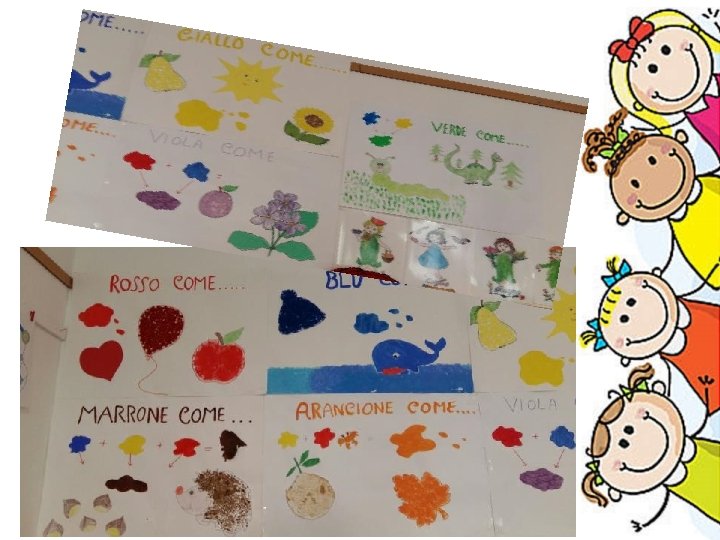 Ancora colori. . . • Prendendo spunto dalla grande varietà di colori che caratterizza la stagione autunnale, abbiamo introdotto e sviluppato il tema dei colori. • I bambini, attraverso varie attività e tecniche di coloritura, hanno imparato i colori primari e secondari.