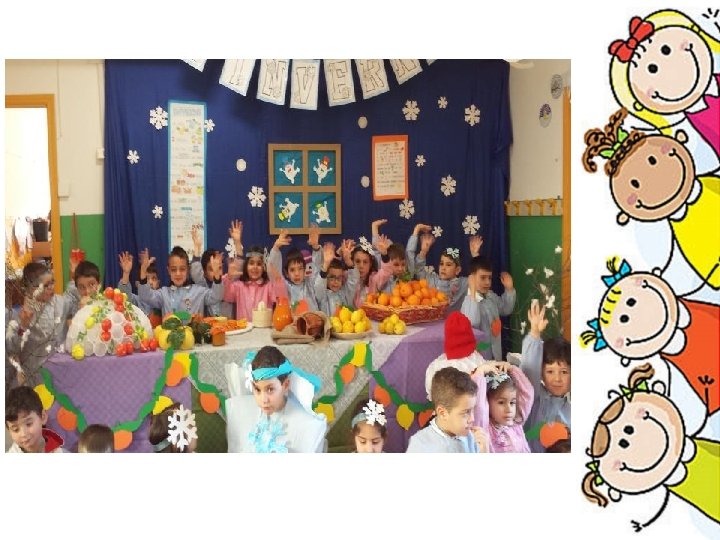 GENNAIO • Il mese di Gennaio è stato dedicato, principalmente, alla stagione invernale, cercando di stimolare la curiosità dei bambini attraverso conversazioni e riflessioni sui fenomeni atmosferici, sulla frutta di stagione, sui mezzi di riscaldamento e sull'abbigliamento invernale.