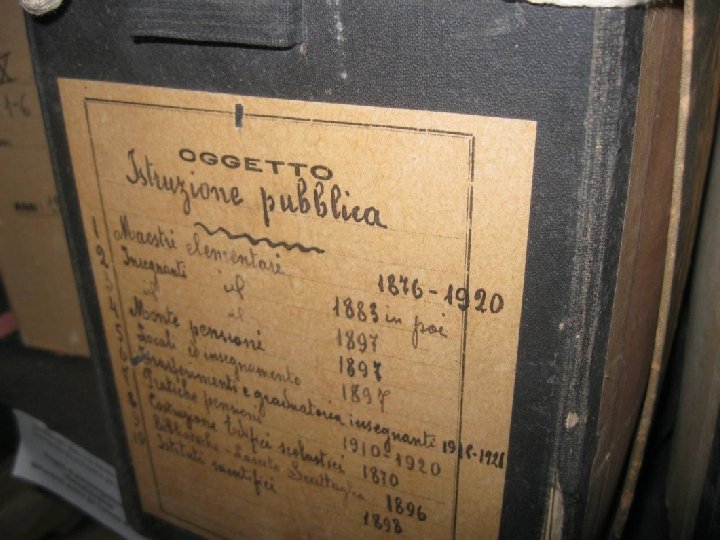 La nostra guida nei sotterranei dell’archivio comunale Il sig. Saverio Bruno, la nostra guida, ci ha detto che in questi fascicoli si possono ritrovare notizie sulla costruzione delle piscine. Ci ha fatto notare che prima del 1927 abbiamo l’archivio di Montrone e quello di Canneto. Poi uno solo, perché nel periodo fascista i due comuni furono accorpati.