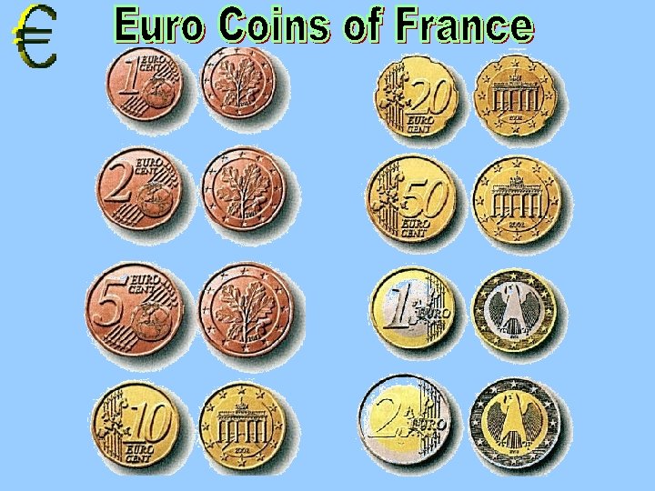 1 cent 2 cents 10 cents 20 cents 1 Euro 5 cents 50 cents 2 Euro coin