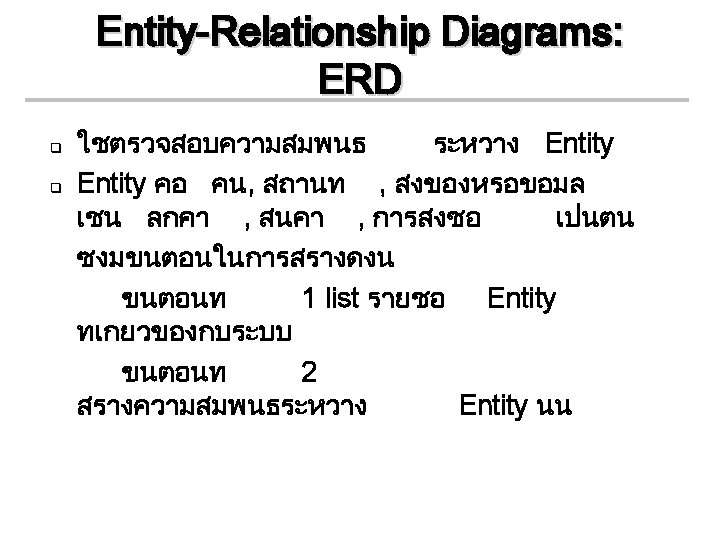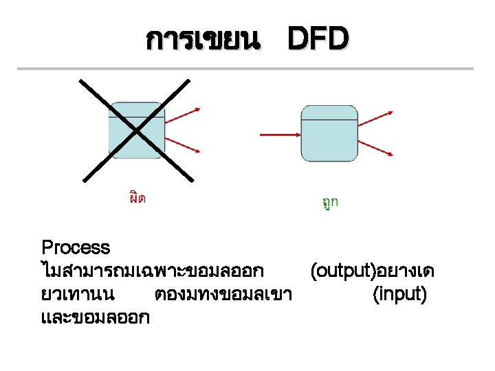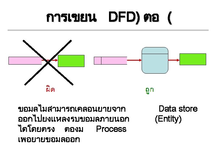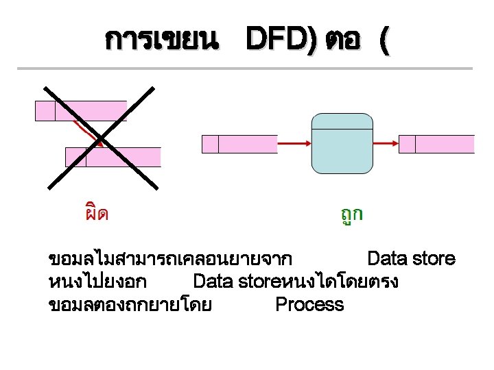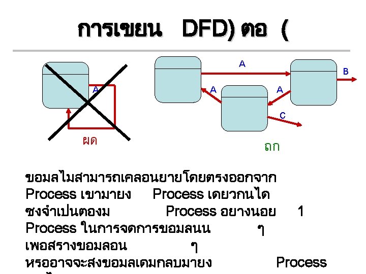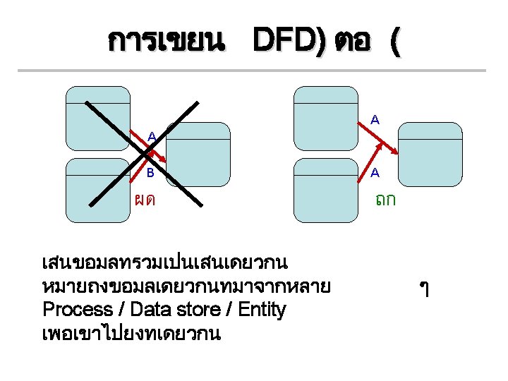Data Flow Diagram: DFD (ตอ ) DFD is used to link between initial business analysis, E-R diagrams and relational database models