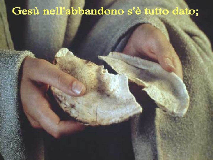 il Paradiso al ladrone, il perdono ai carnefici, la vita sua, fino a gridare: "Dio mio, perché mi hai abbandonato? " a noi la madre e il suo corpo e il suo sangue,