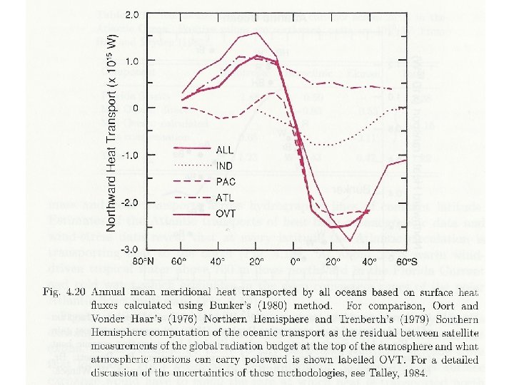 The horizontal heat convergence is average for a constant latitude globally or from west to east coast of an ocean, we have the meridional heat transport where and are zonal averages. Integrating from the northern most extent (yn) where the transport vanishes, We can determine from the net surface heat flux. (The small sub-grid transport is negligible. )