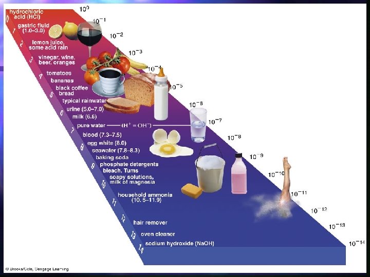 p. H (acidity or alkalinity) n measure of the dissociation of water into ions (H+, OH), (fig. 7. 9) n p. H n = - log [H+] p. H effects on biological and geochemical reactions