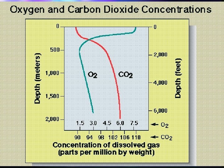Dissolved Oxygen seawateratmosphere exchange at air water interface only (fig. 7. 8) n biological processes that affect O 2 concentration: photosynthesis and respiration n typical distribution of O 2 in water column and processes that control this distribution n