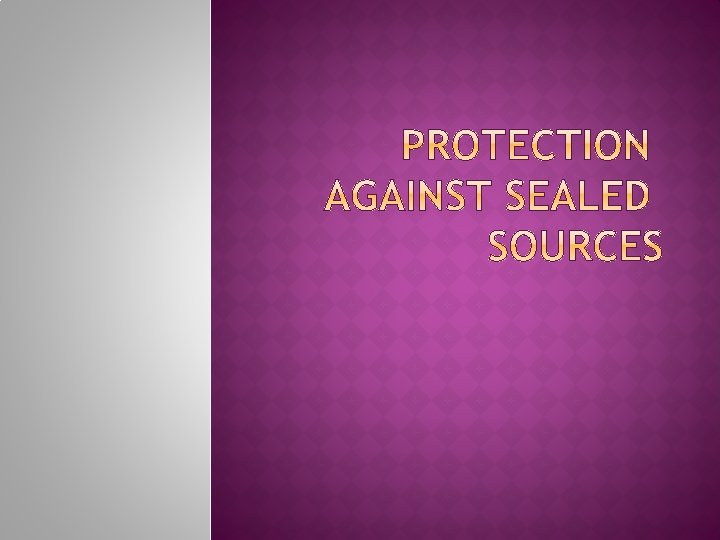 � Sealed sources present an external radiation hazard as opposed to a contamination hazard. Sealed sources can emit any type of ionizing radiation, including alpha particles, beta particles, gamma rays, x-rays, or neutrons. � 1. Do not touch electroplated sources, as this may result in the removal of the active material. � 2. Wear gloves when working with a plated or deposited source. � 3. Monitor hands and fingers after handling a plated or deposited source. � 4. Do not use handling tools in such a way as to penetrate the surface of the source. � 5. Storage containers should not have material that abrades the surface of the electroplated sources.