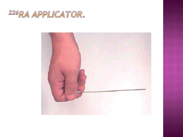 � 1. 1. Brachytherapy (therapy at a short distance) is a term that is used to describe the interstitial application of radioactive sources by placing them directly in the tumor (e. g. breast, prostate), in moulds (e. g. skin, rectum) or in special applicators (e. g. vagina, cervix). Originally, brachytherapy techniques involved the use of individual needles or manual after loading. Relatively low activity sources were used in these applications. Historically, 226 Ra encapsulated in platinum in either needles or tubes of a few mm in diameter and up to 5 cm in length was used (Fig).